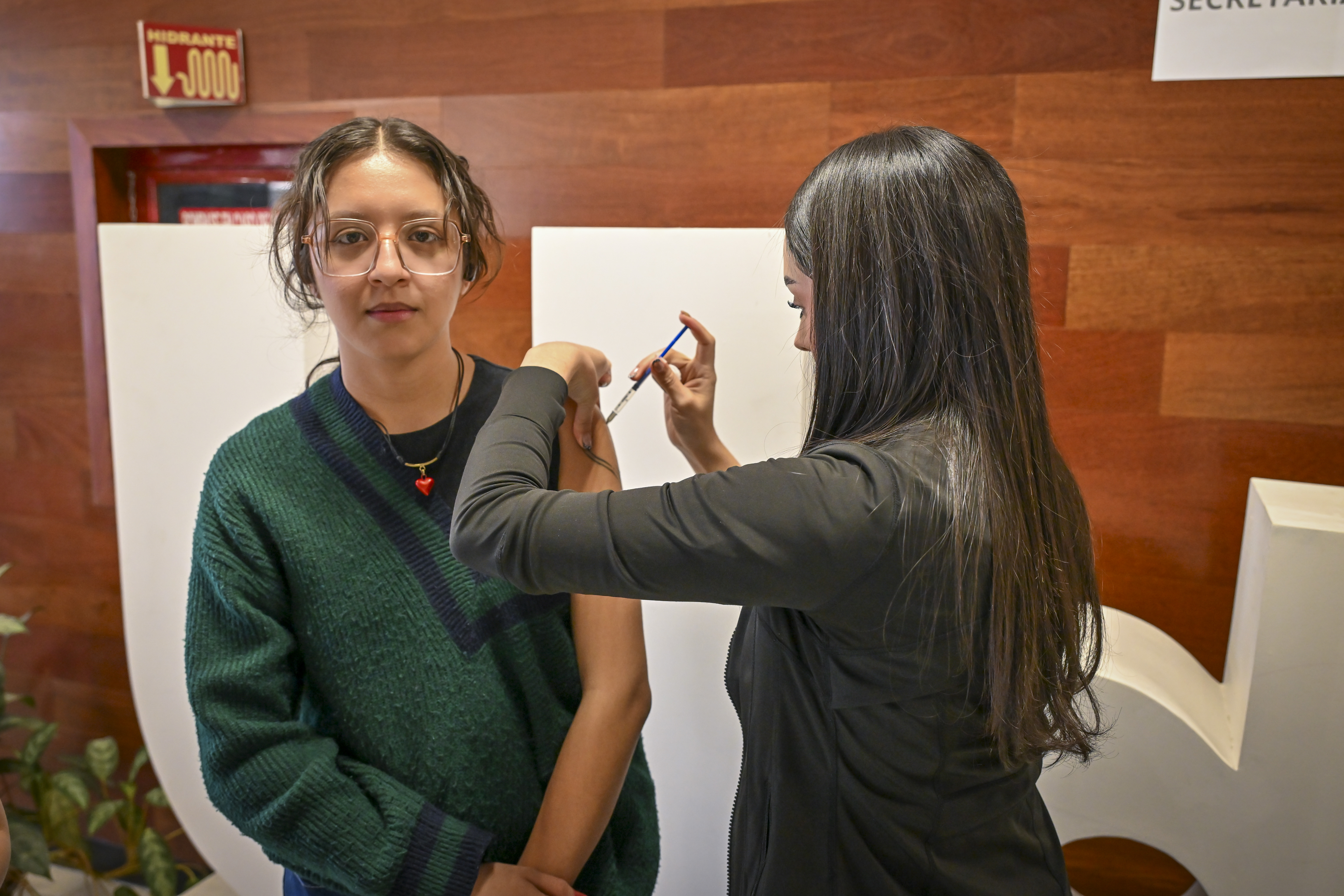Campaña de vacunación contra el sarampión en el lobby del edificio de rectoría general