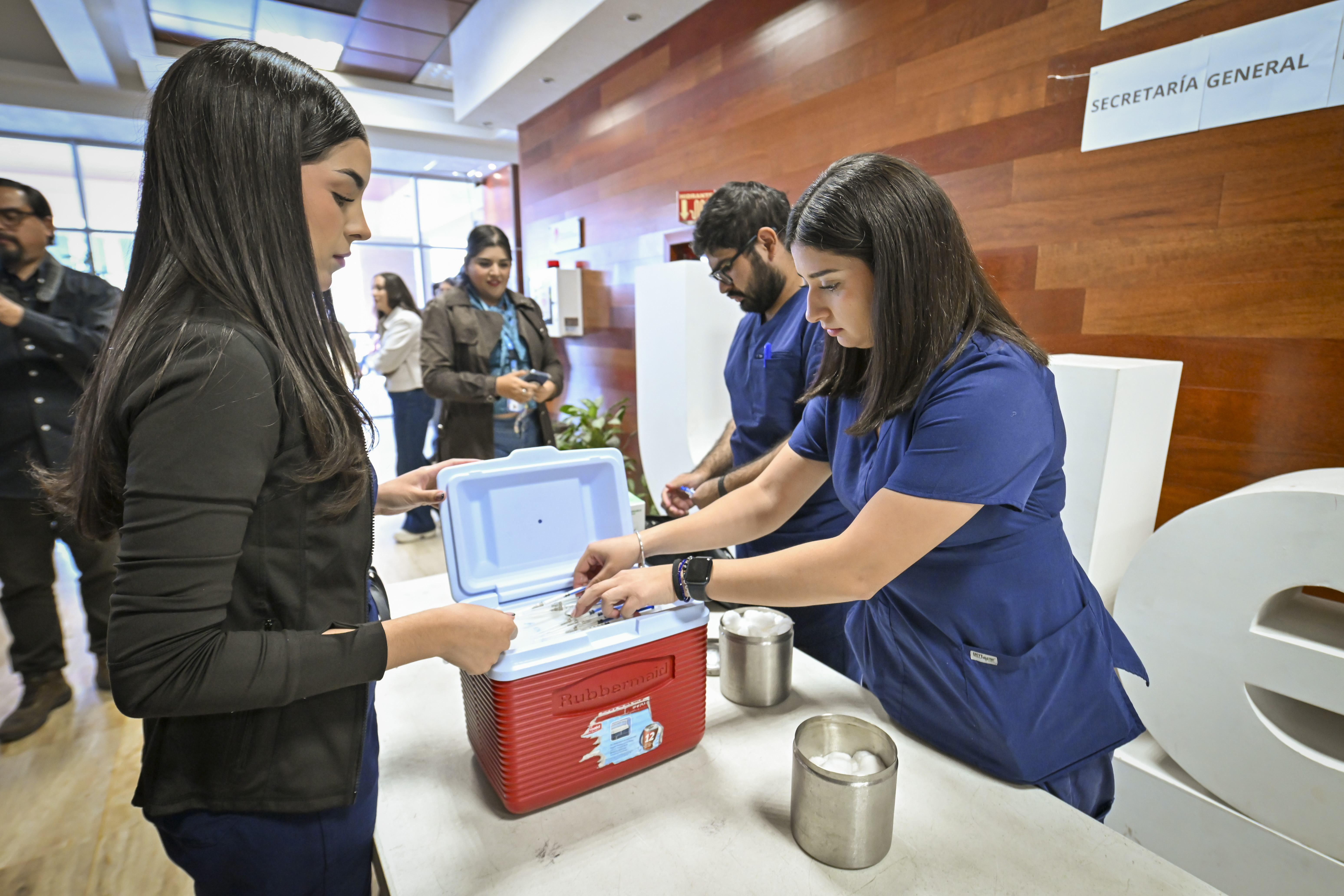 Campaña de vacunación contra el sarampión en el lobby del edificio de rectoría general