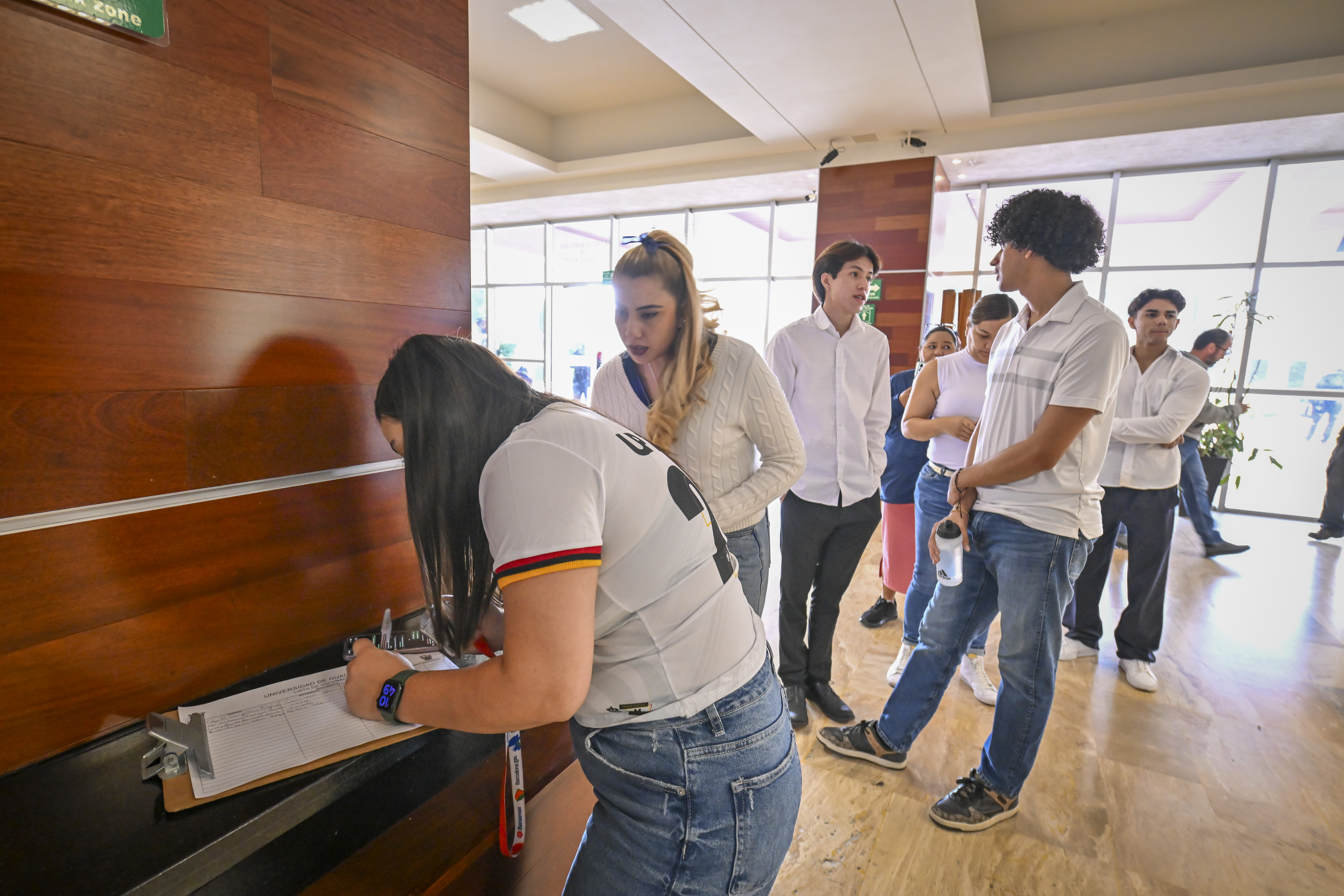 Campaña de vacunación contra el sarampión en el lobby del edificio de rectoría general
