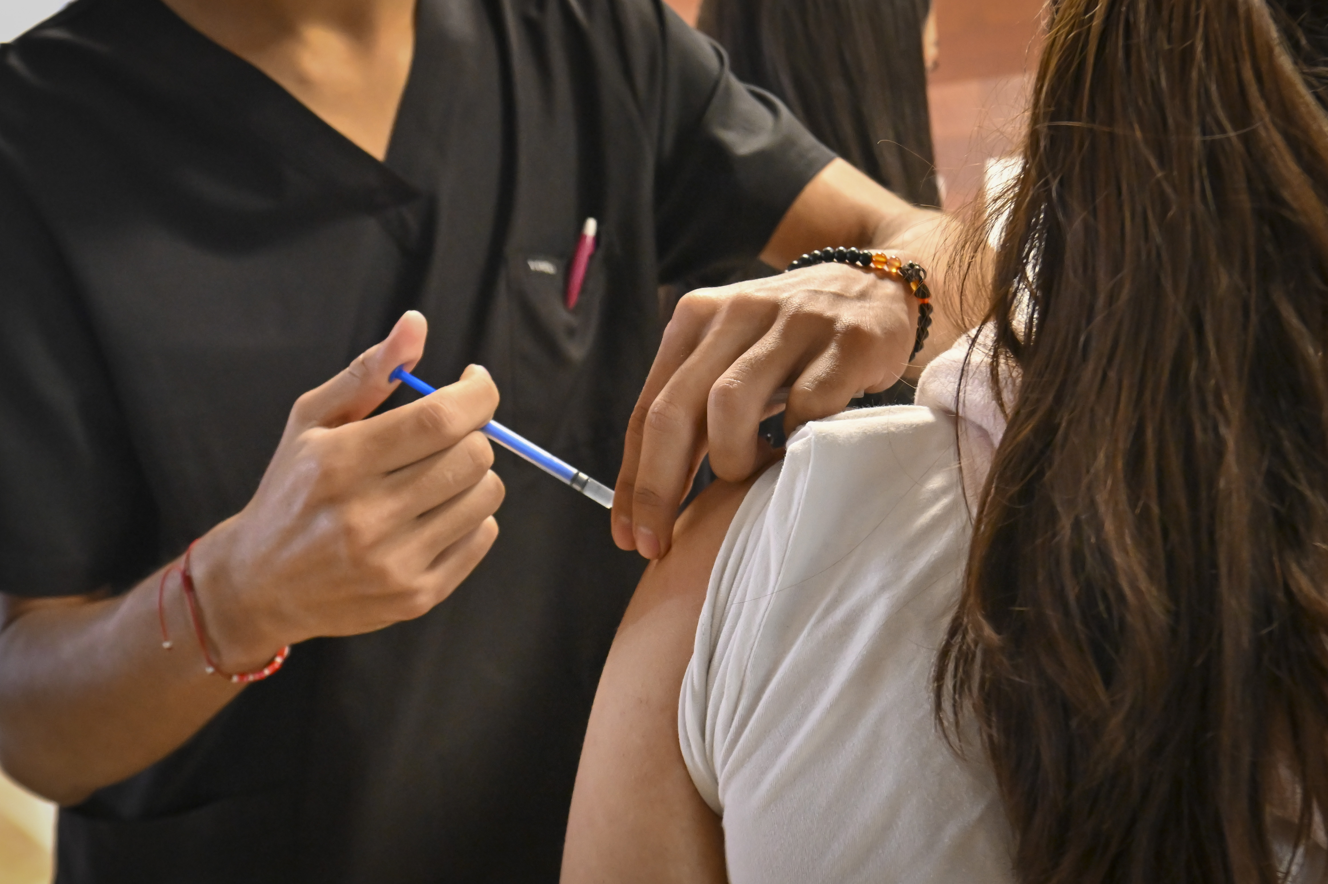 Campaña de vacunación contra el sarampión en el lobby del edificio de rectoría general