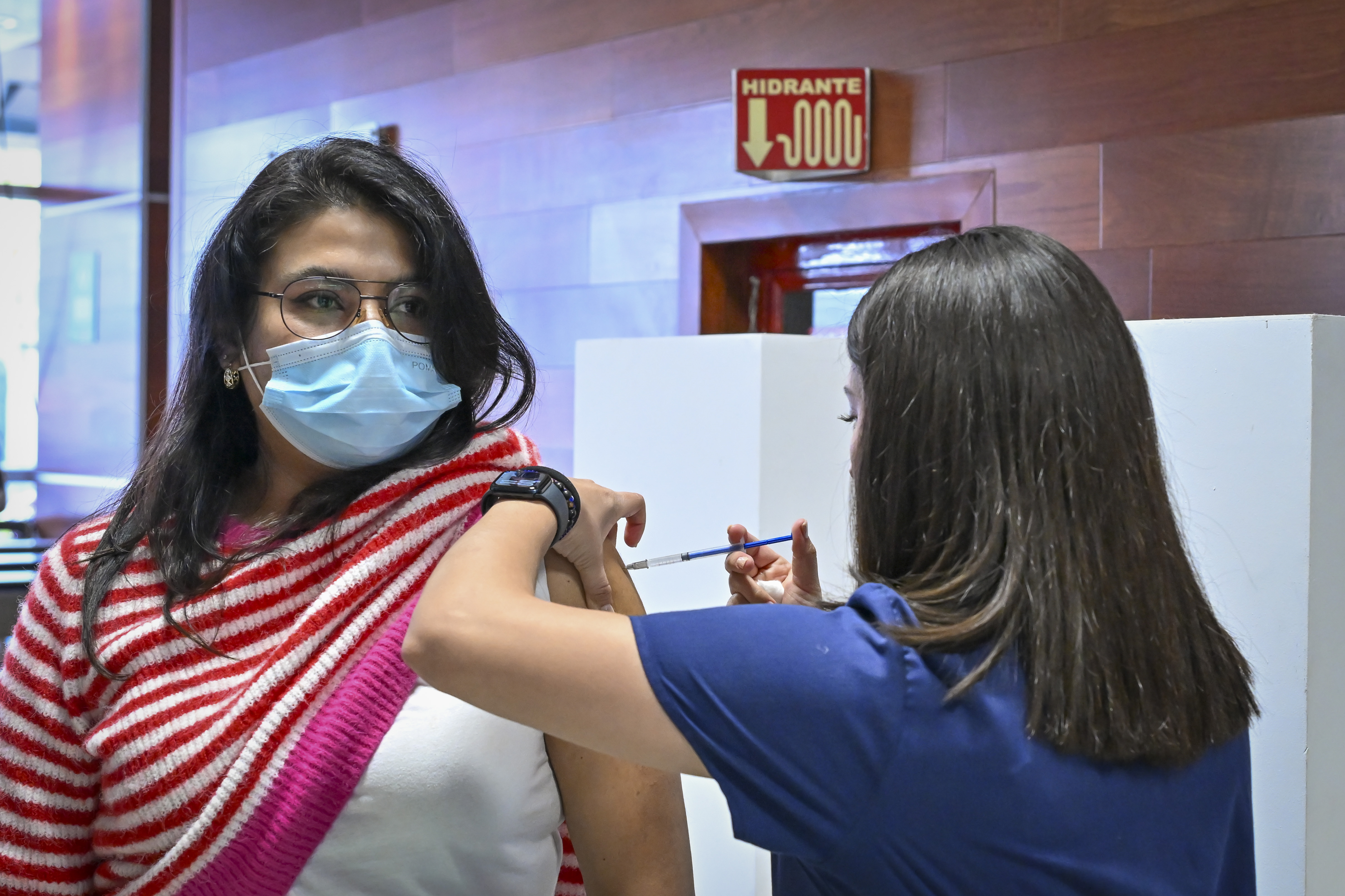 Campaña de vacunación contra el sarampión en el lobby del edificio de rectoría general