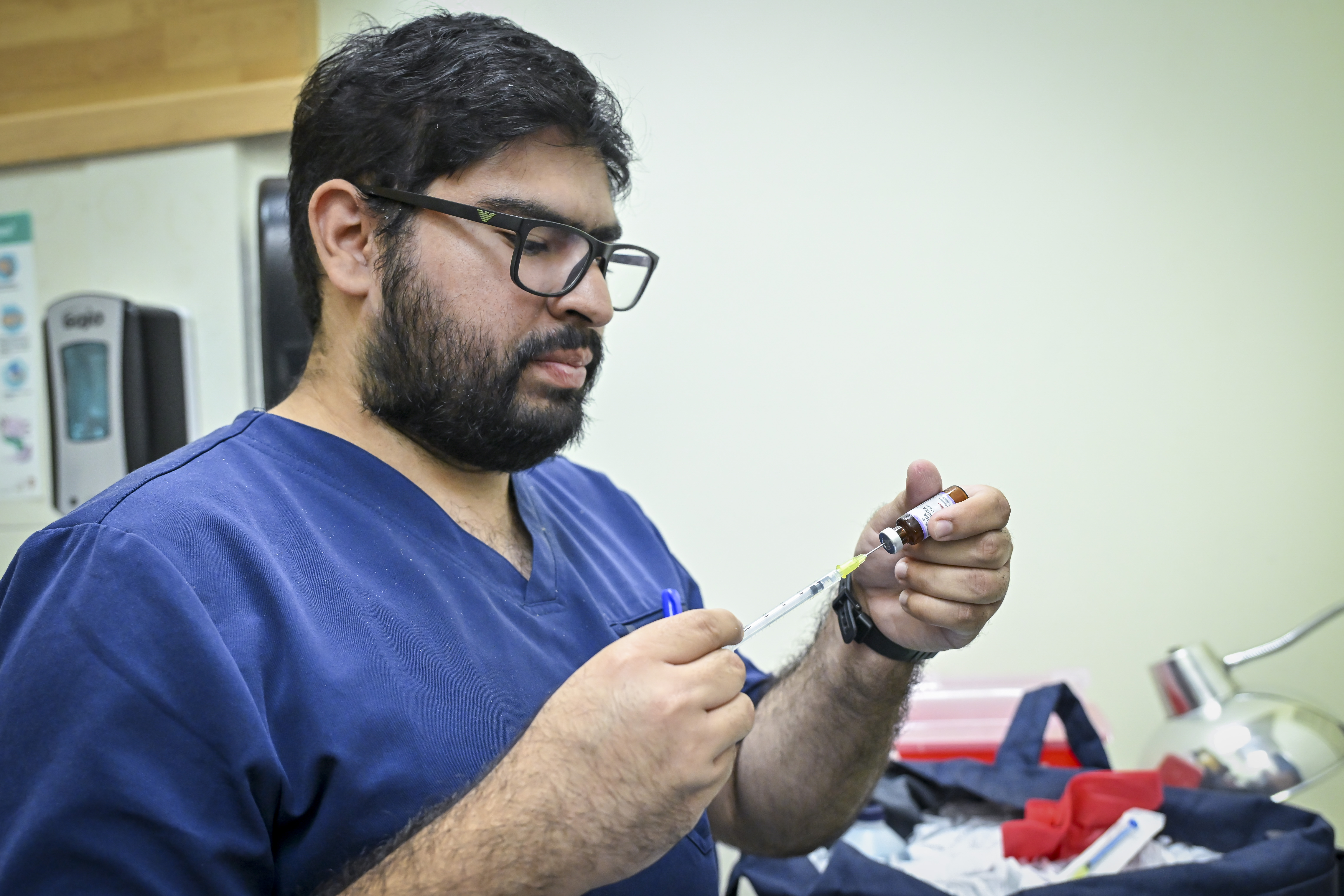 Campaña de vacunación contra el sarampión en el lobby del edificio de rectoría general